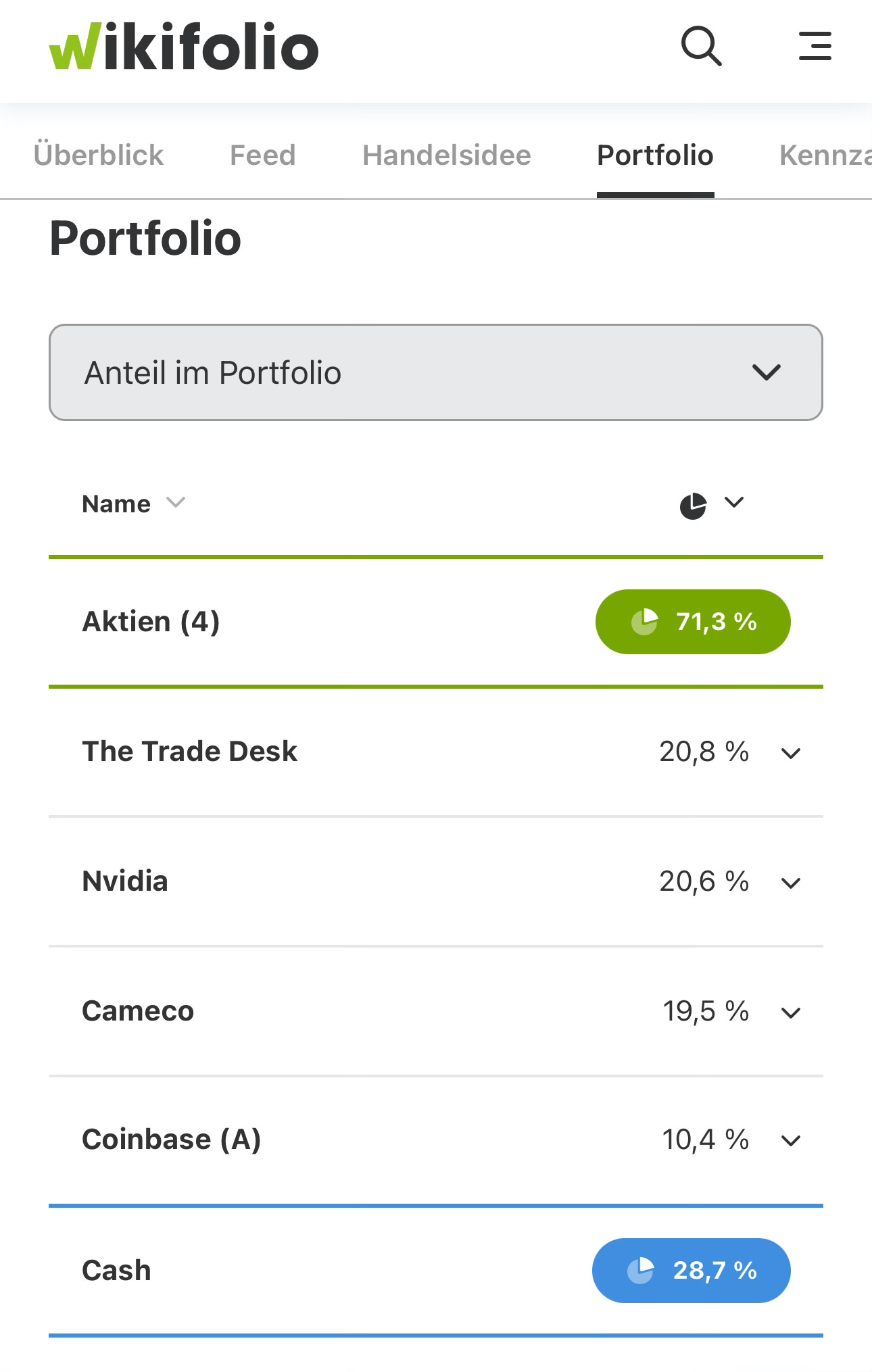 Aktuell sind alle Wikifolios mit den Strategien im Status “Publiziert” und können bereits auf Wikifolio angesehen werden. Alle Portfolioinformationen sowie Käufe- und Verkäufe sind sichtbar.