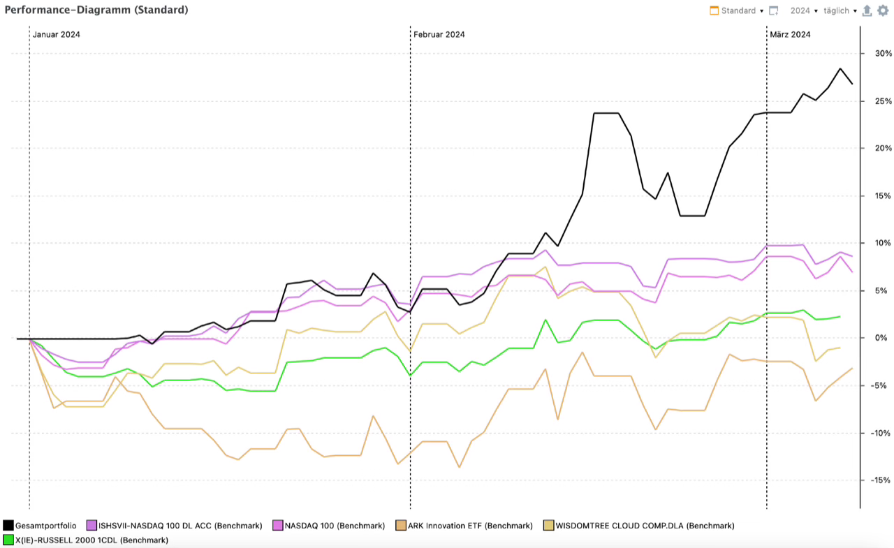 Hier die Performanceübersicht im Vergleich zu wachstumsorientierten Indizes seit Jahresanfang, um eine Orientierung zu bekommen und einen Vergleichsmaßstab zu haben.