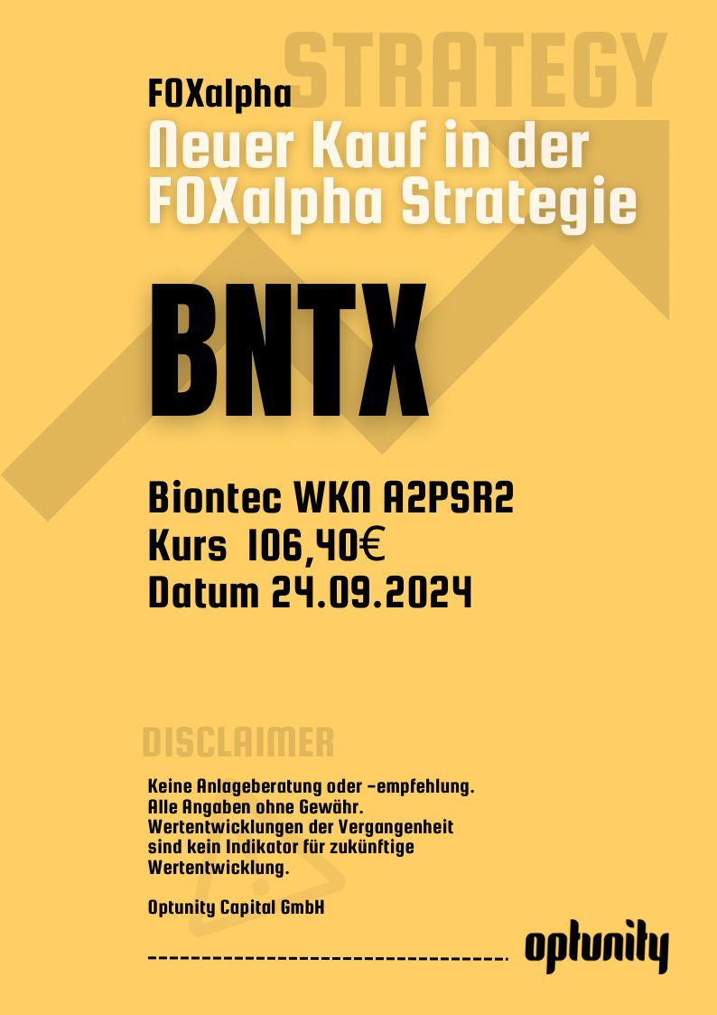 Neuer Depotkauf am 24.09.2024 für das FOXalpha Portfolio. Der Cashanteil reduziert sich damit von 20% auf 0%.