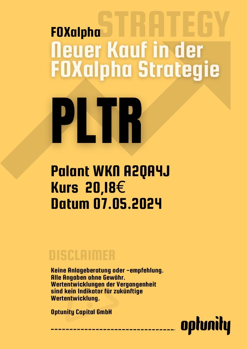 Neuer Depotkauf am 07.05.2024 für das FOXalpha Portfolio. Der Cashanteil reduziert sich damit von 20% auf 0%.