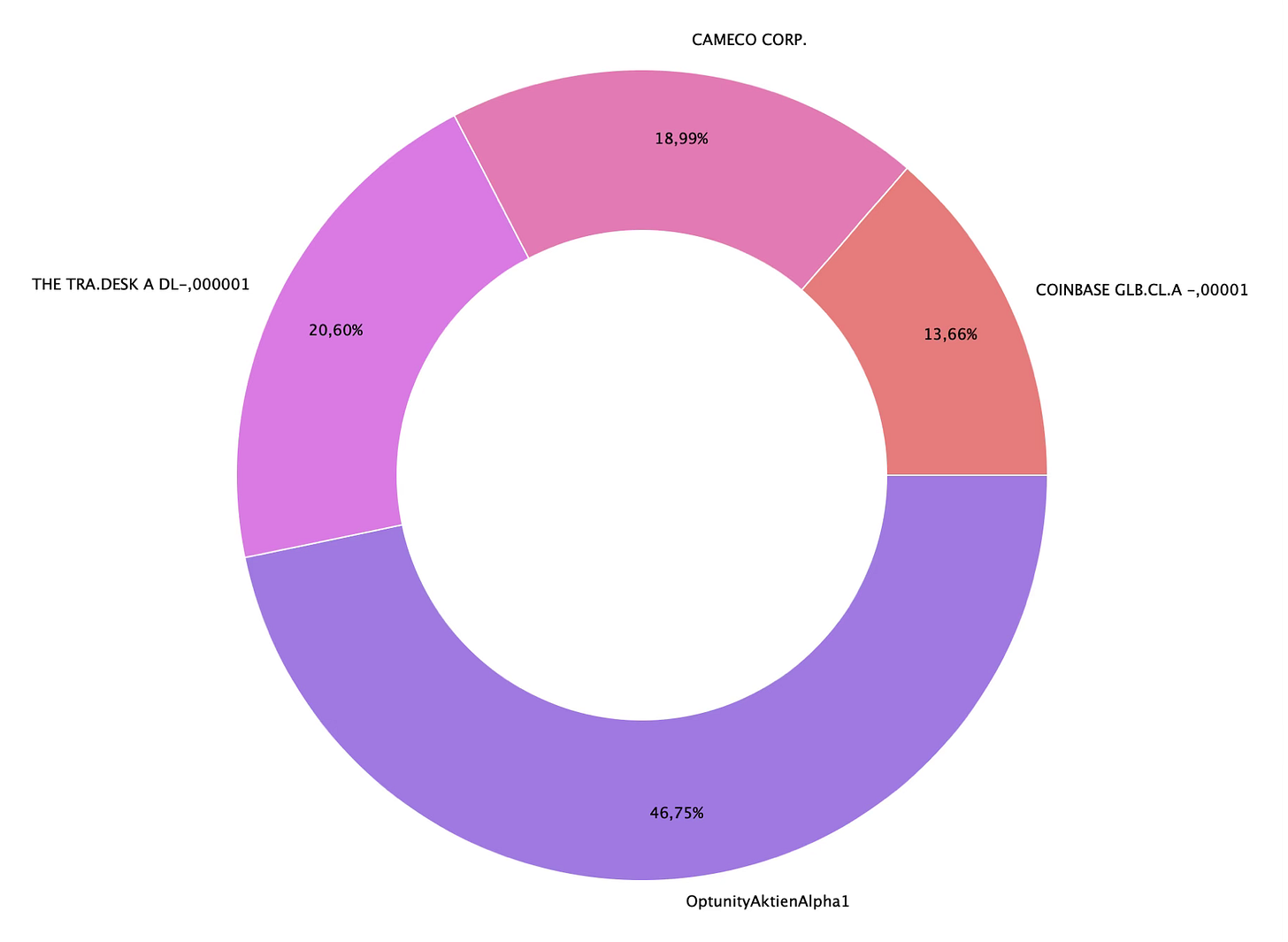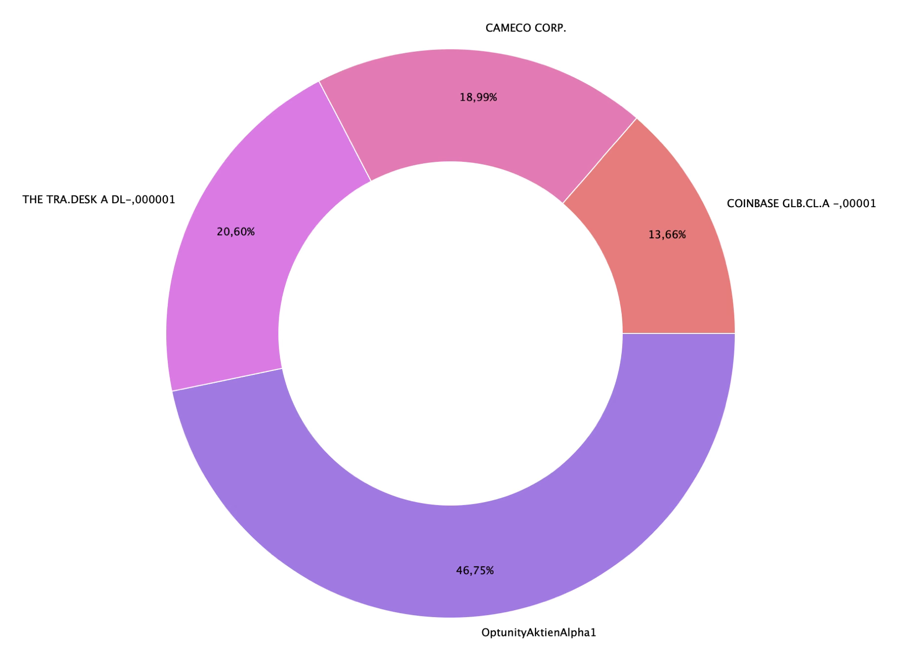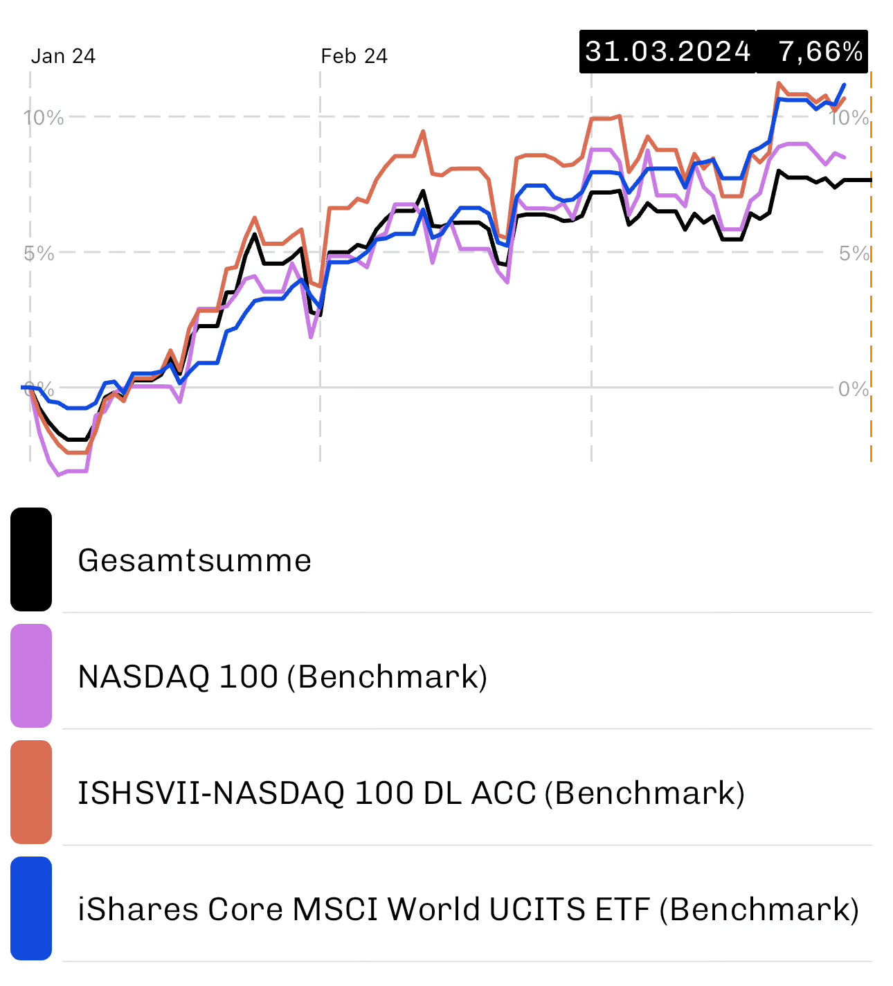 Aufgrund des Cashanteils von 37,59% haben wir gegenüber der Benchmark, dem Nasdaq100, zwei Prozentpunkte schlechter abgeschnitten.