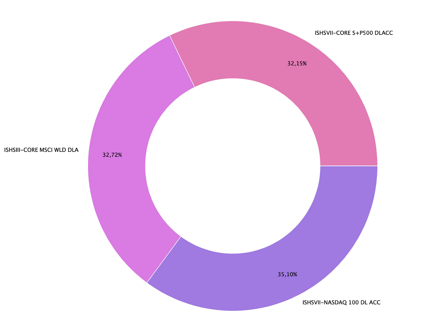 Folgende Gewichtung der ETFs war zum 31.03.2024 im Depot vorhanden.