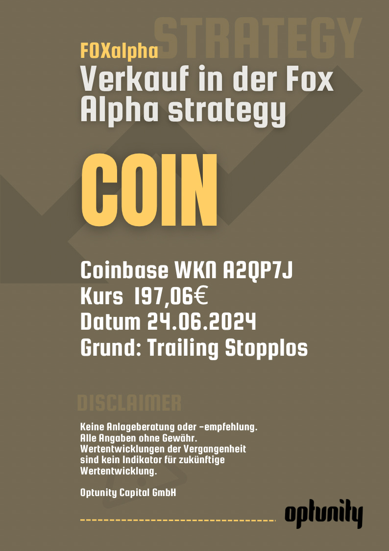 Heute verkaufen wir in der FOXalpha Strategie Coinbase.