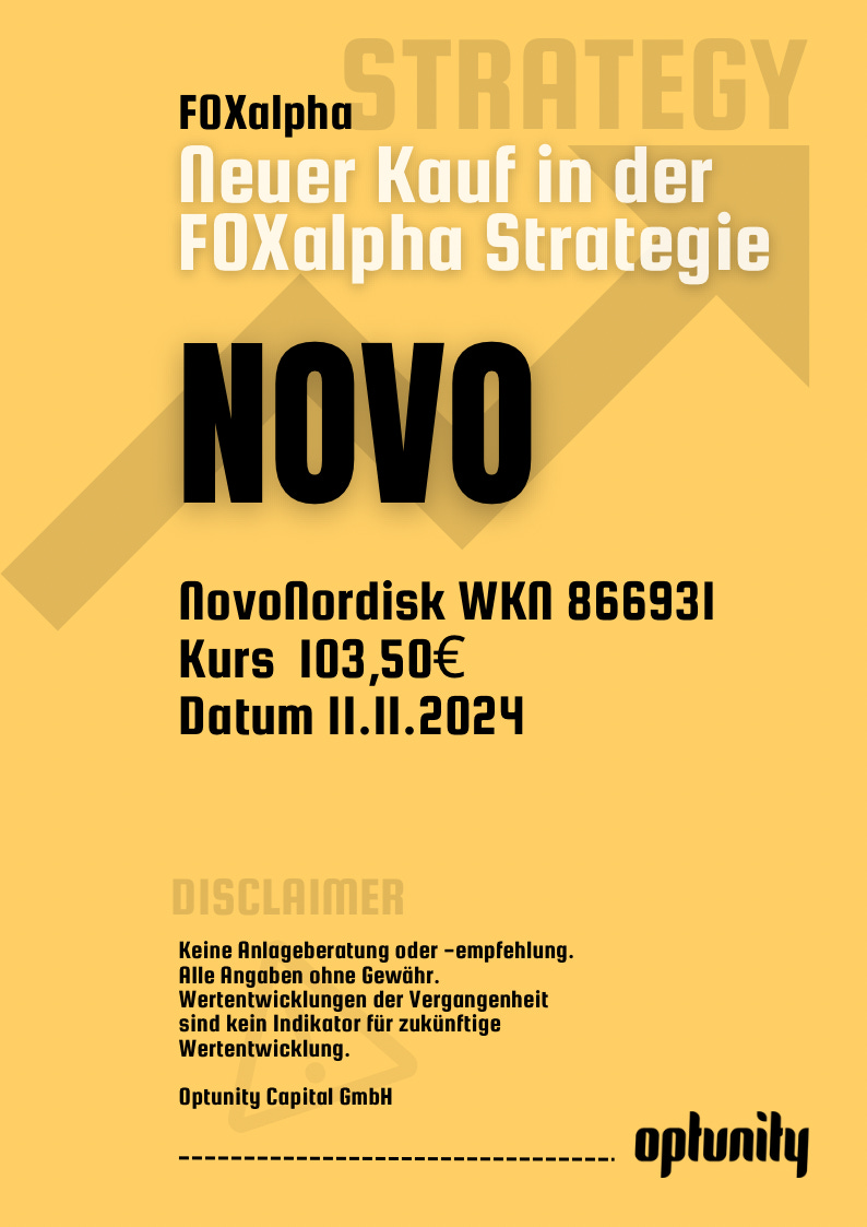 Neu im FOXalpha Depot mit einem Kauf am 11.11.24 ist NovoNordisk.