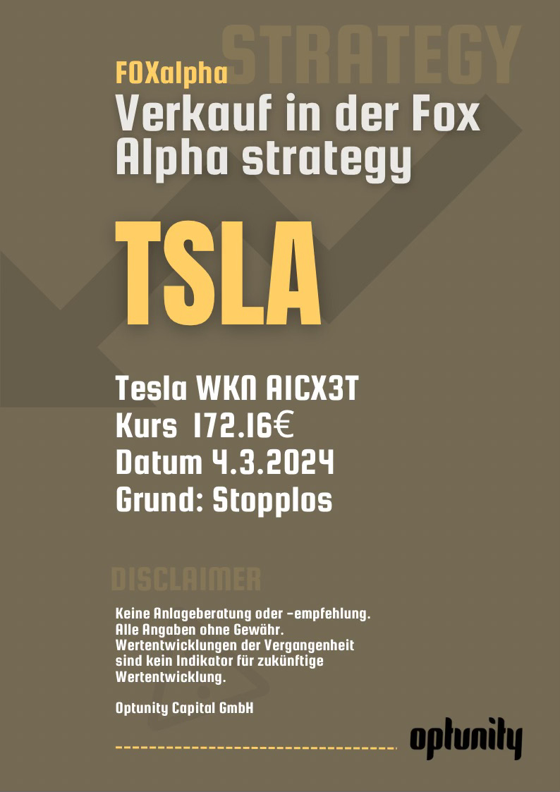 Tesla ist unter unser technisch definiertes Stopplos Level gefallen. Zusätzlich kamen heute News zu negativen Absatzzahlen in China. Ein massiver Preiskampf in China steht bevor. Konkurrenten wie BYD sind ebenfalls heute stark gefallen.